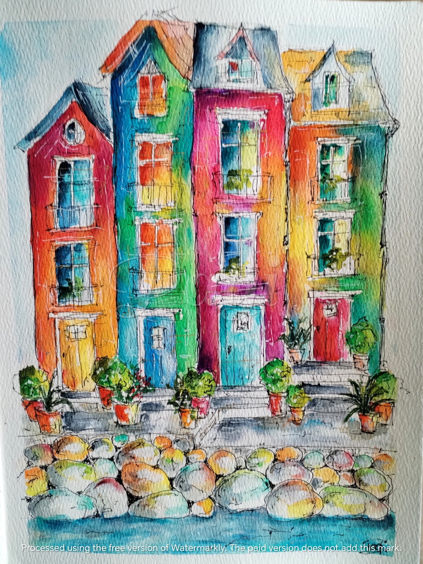 (Unique expressive watercolor paintings – houses, windows, and stories preserved in color.)
